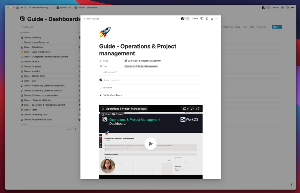 With this expertise, we couldn't keep it to ourselves. After many hours (and even months) of standardization and documentation, we are proud to present ZeWorkOS. It is the Notion template that many SME's (including us at Zetoolbox) use every day to organize their business.